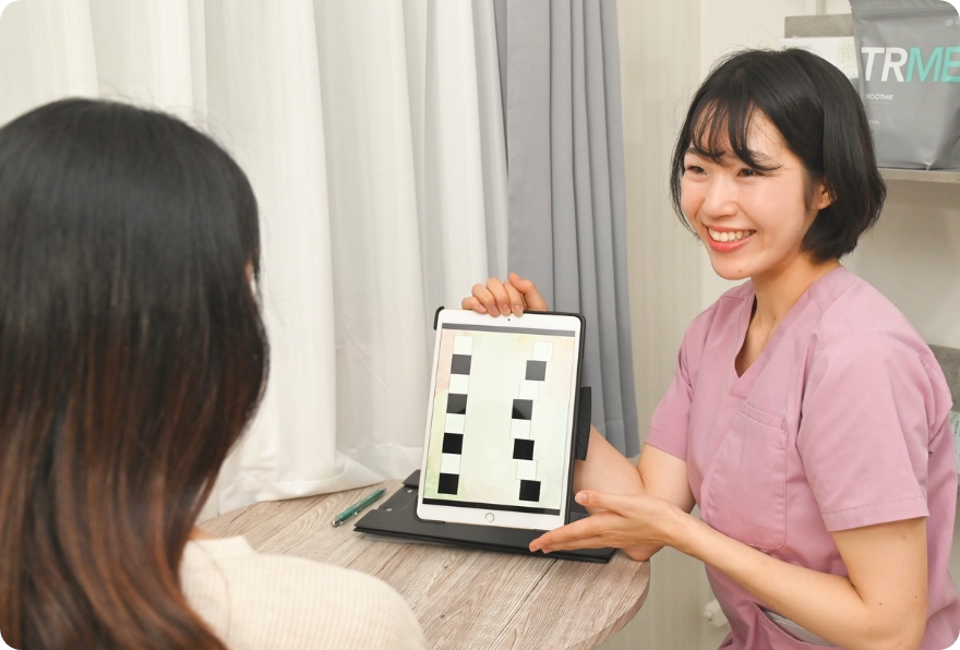 初回は丁寧なカウンセリングと姿勢チェックから行いますので、